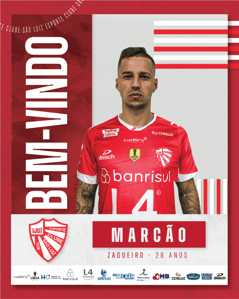 Jogador com passagem recente pelo São José – RS, 28 anos de idade. Marcão chega motivado e com muita vontade de vestir a camisa rubra: “Estou muito feliz e motivado em vestir a camisa do São Luiz. Sei da responsabilidade e estarei 100% comprometido com o clube. Tenho certeza que 2026 será um ano de grandes conquistas.”